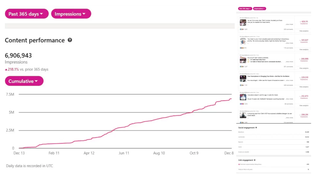 We built a clear content plan, ensured consistent publishing, and actively engaged with his audience to spark conversations and build trust. This allowed Dr. Kunal to focus on his practice while his personal brand grew steadily and strategically on LinkedIn.